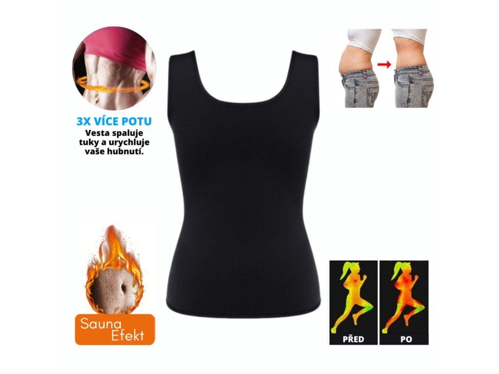 Jste připraveni zefektivnit svůj trénink s neoprenovou vestou? Vezměte si ji do posilovny, nebo na běh, vylepši tím svoje každodenní cvičení a dosáhni jen těch nejlepších výsledků. Neoprenová vesta pomůže tvému tělu zvýšit tepelnou aktivitu při fyzicky náročnějších činnostech, díky tomu spálíš mnohem více tukových buněk a odplavíš ze svého těla více škodlivých toxinů, než bez neoprenové vesty. Jestli máte rádi pohyb a nádhernou figuru, nesmí Vám vesta chybět.