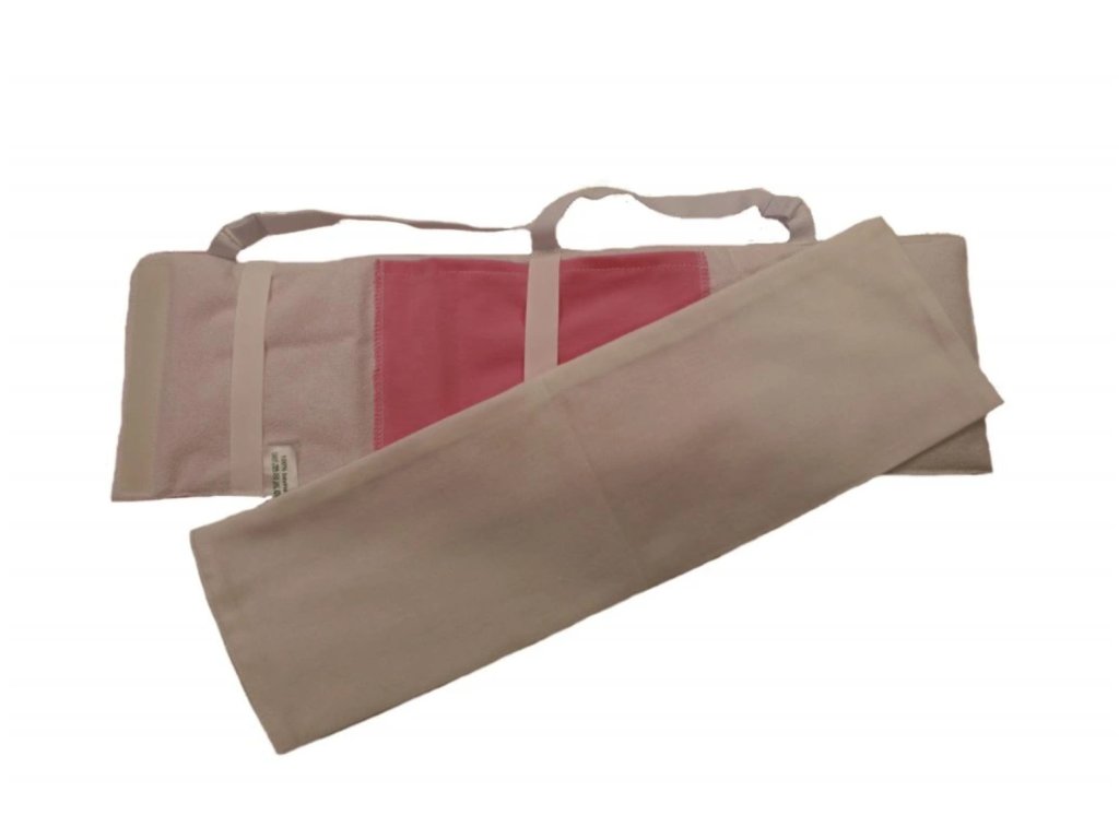 Dobře vyždímaný bavlněný díl vložte do zábalového pásu. Přiložte na tělo a upevněte suchým zipem, aby zábal co nejlépe přilnul k tělu a mohl být jeho účinek co největší.