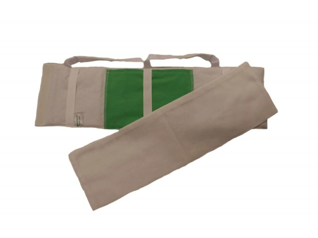 Dobře vyždímaný bavlněný díl vložte do zábalového pásu. Přiložte na tělo a upevněte suchým zipem, aby zábal co nejlépe přilnul k tělu a mohl být jeho účinek co největší.